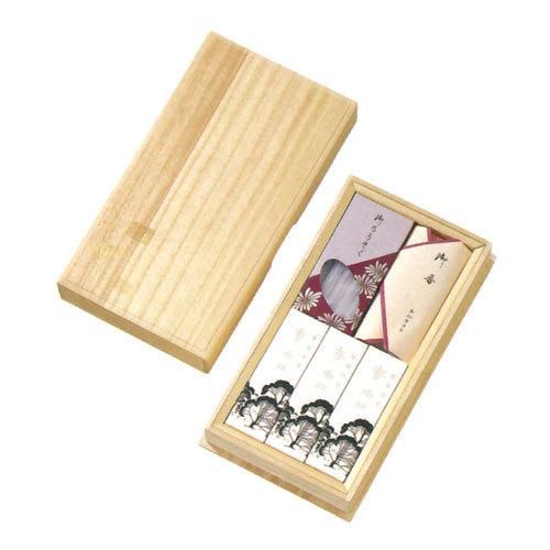 ![]() | ★高級奉書、銀水引にて仕立てております。 ★お線香を使い終わった後に外装箱を 有効的に再利用していただけますよう、 「源氏香の図」を裾模様として入れました。 |